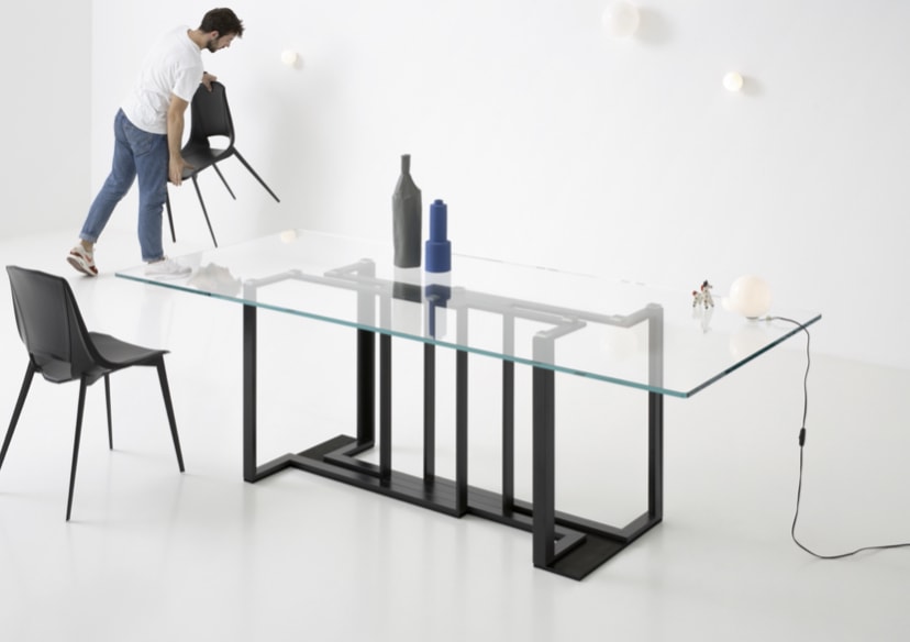 Tampo em vidro temperado transparente 10mm Estrutura metálica dourado ouro e lacado Preto