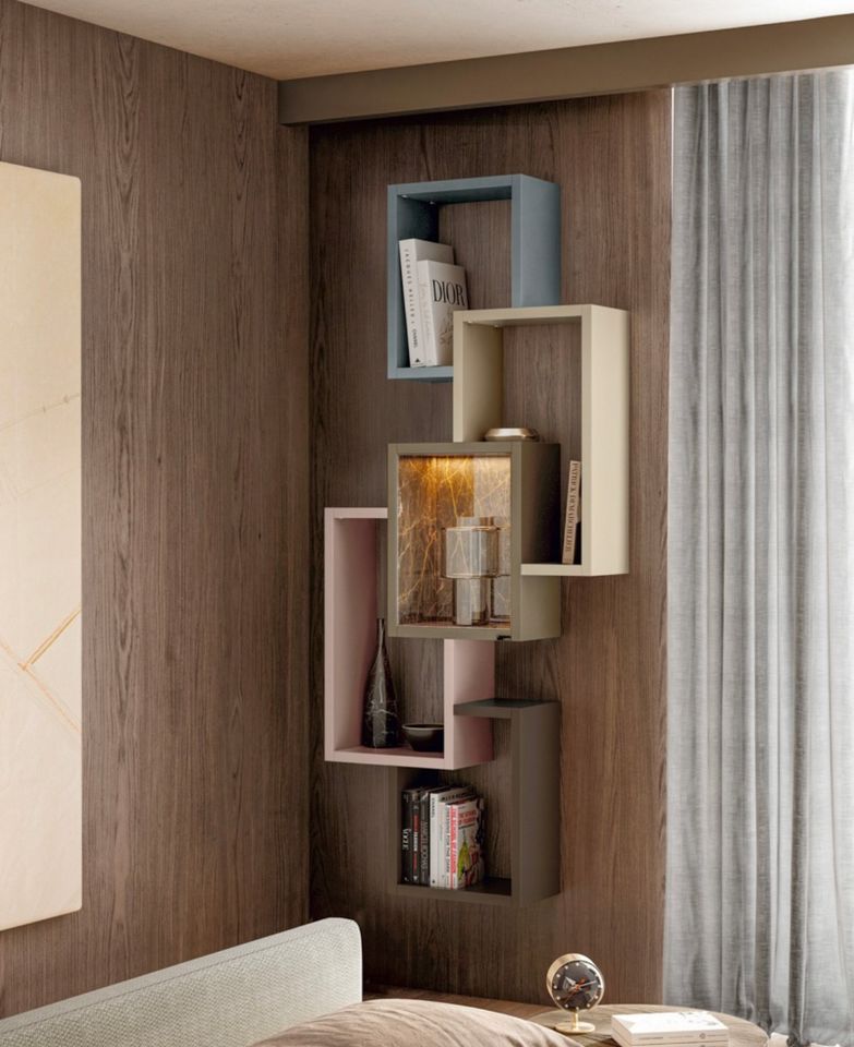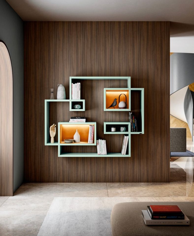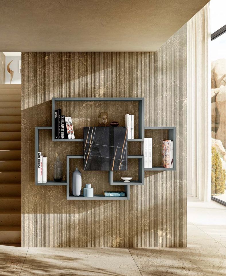 Prateleiras em mdf lacado 30mm Painel central em cerâmico marquina preto