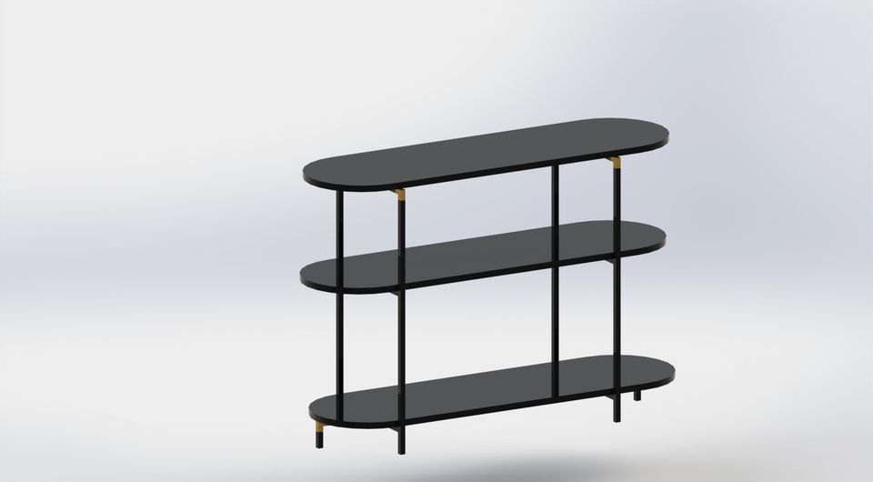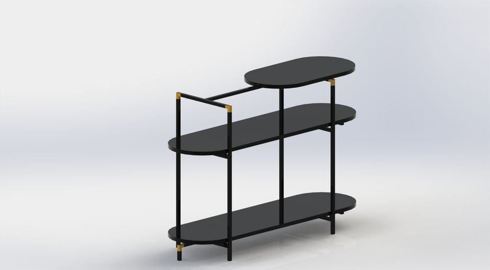 tampo mdf lacado preto estrutura metalica preto detalhes dourados