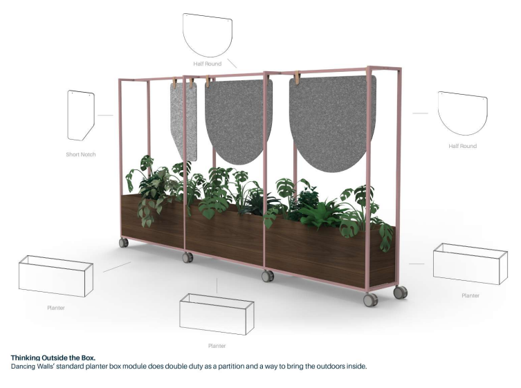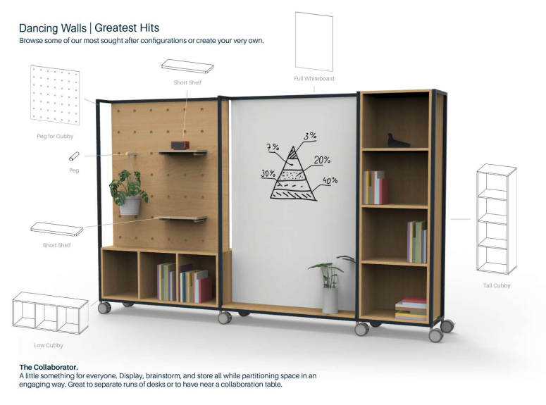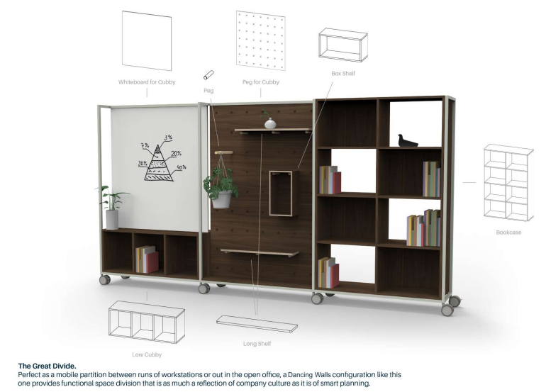 Dancing wall, estante rodada, 2500x450 h1800mm