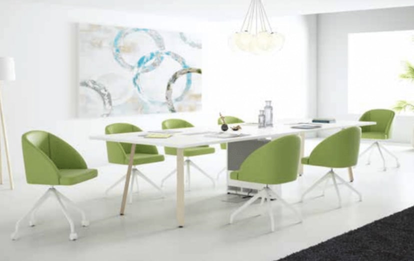Assento e encosto em espuma moldada estofo semipele Estrutura piramidal com ou sem rodas Outros acabamentos sob consulta