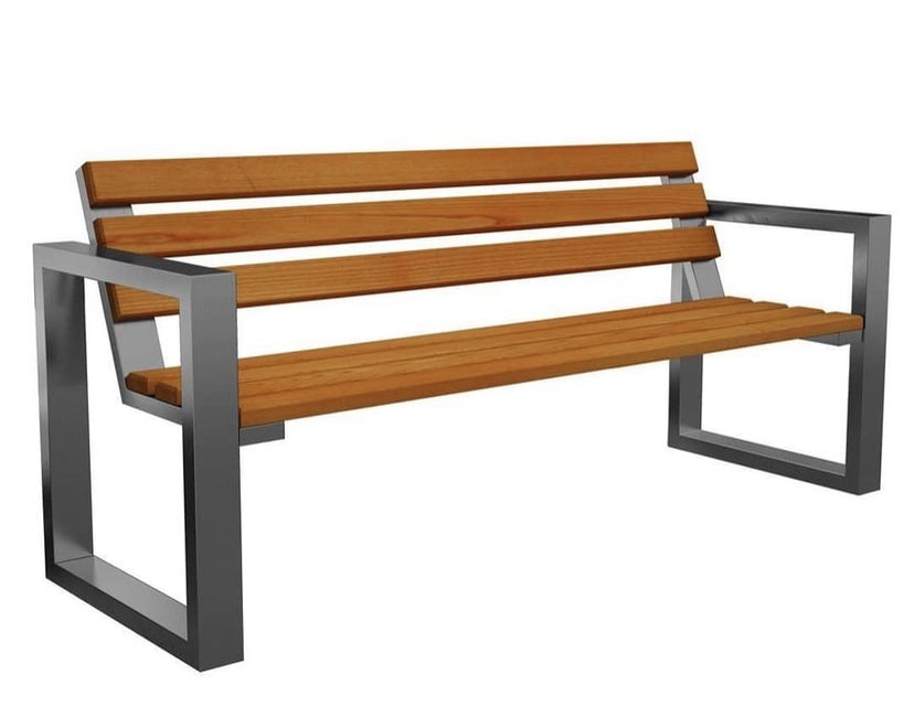 Assentos em ripas madeira maciça Estrutura metálica inox lacado