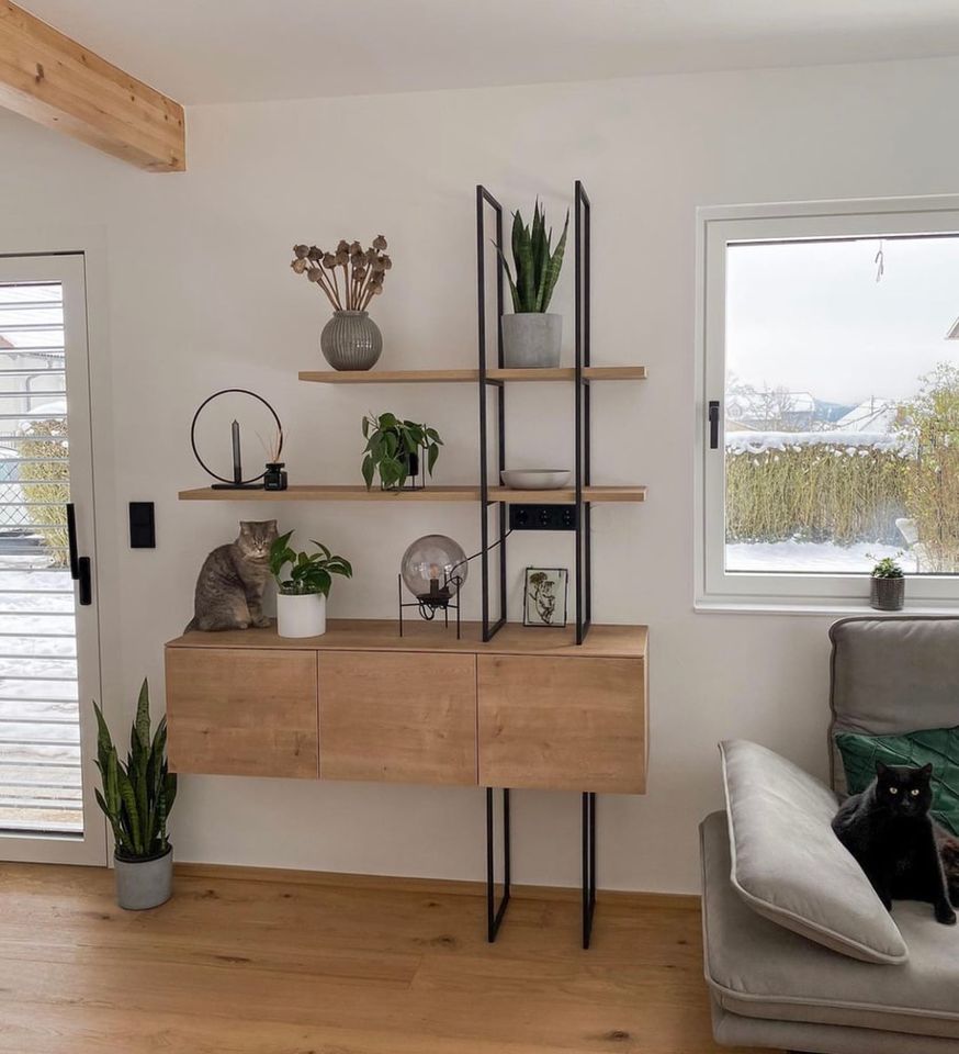 Módulo fechado madeira Prateleiras madeira Estrutura metálica
