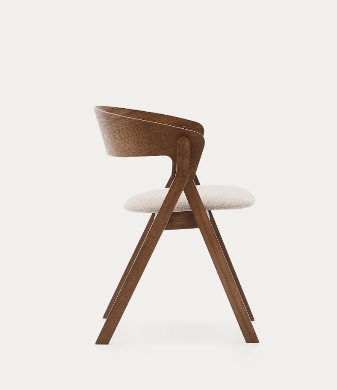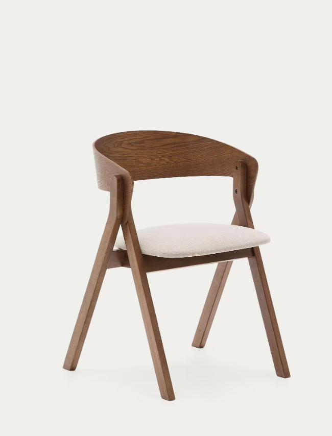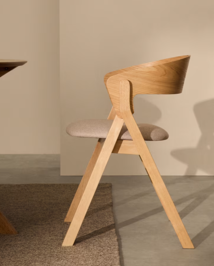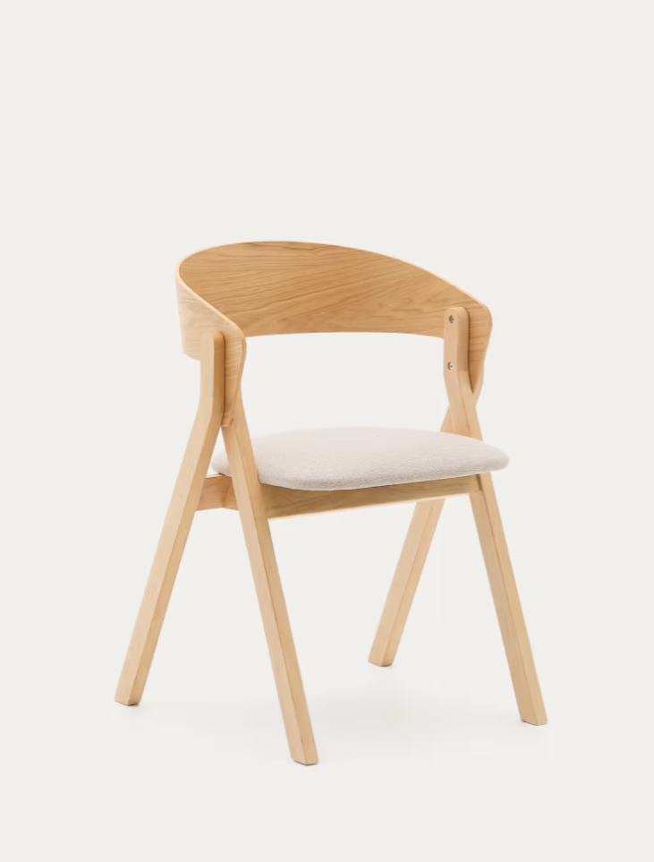 Assento estofado com chenille de estrutura pequena bege, feito de poliéster reciclado.