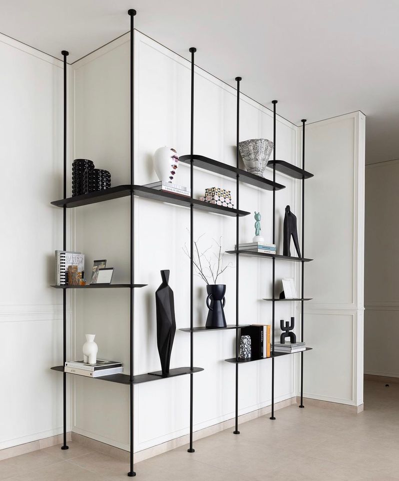 Prateleiras em folha madeira natural Estrutura metálica preto