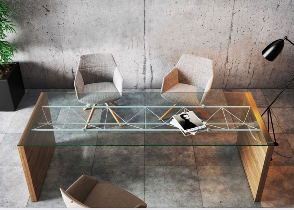 Tampo vidro ultraclear Pernas madeira folha natural Estrutura metálica