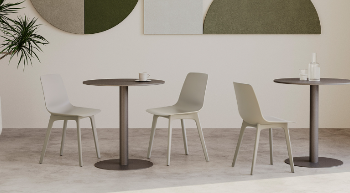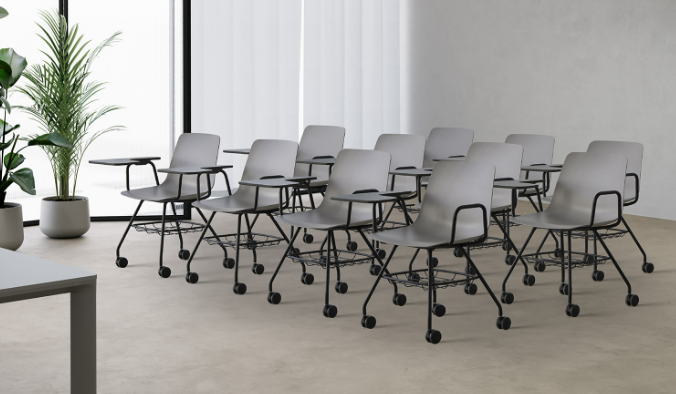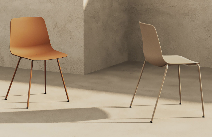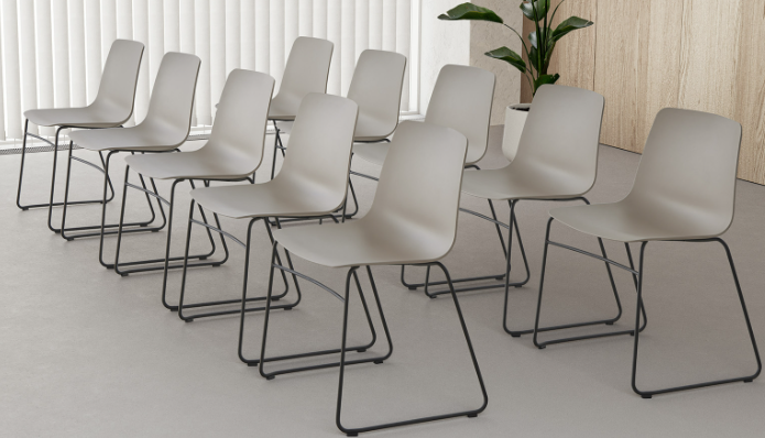 Cadeira não empilhável com casco em polipropileno e base de 4 pés em tubo