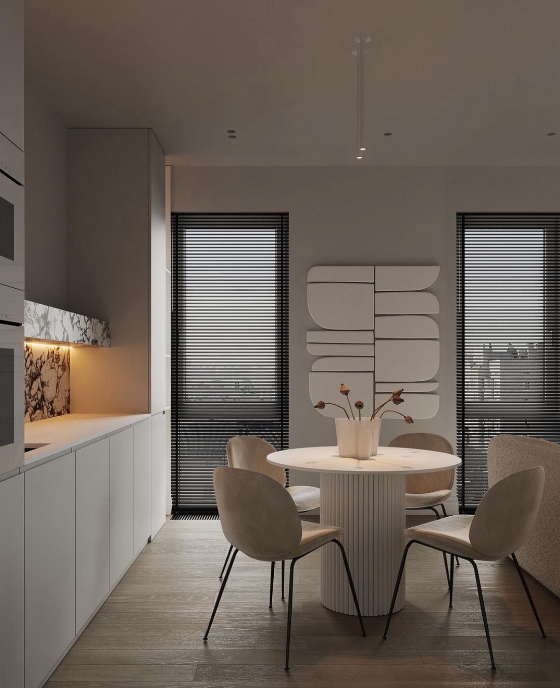 Base coluna em madeira ripada cor branco