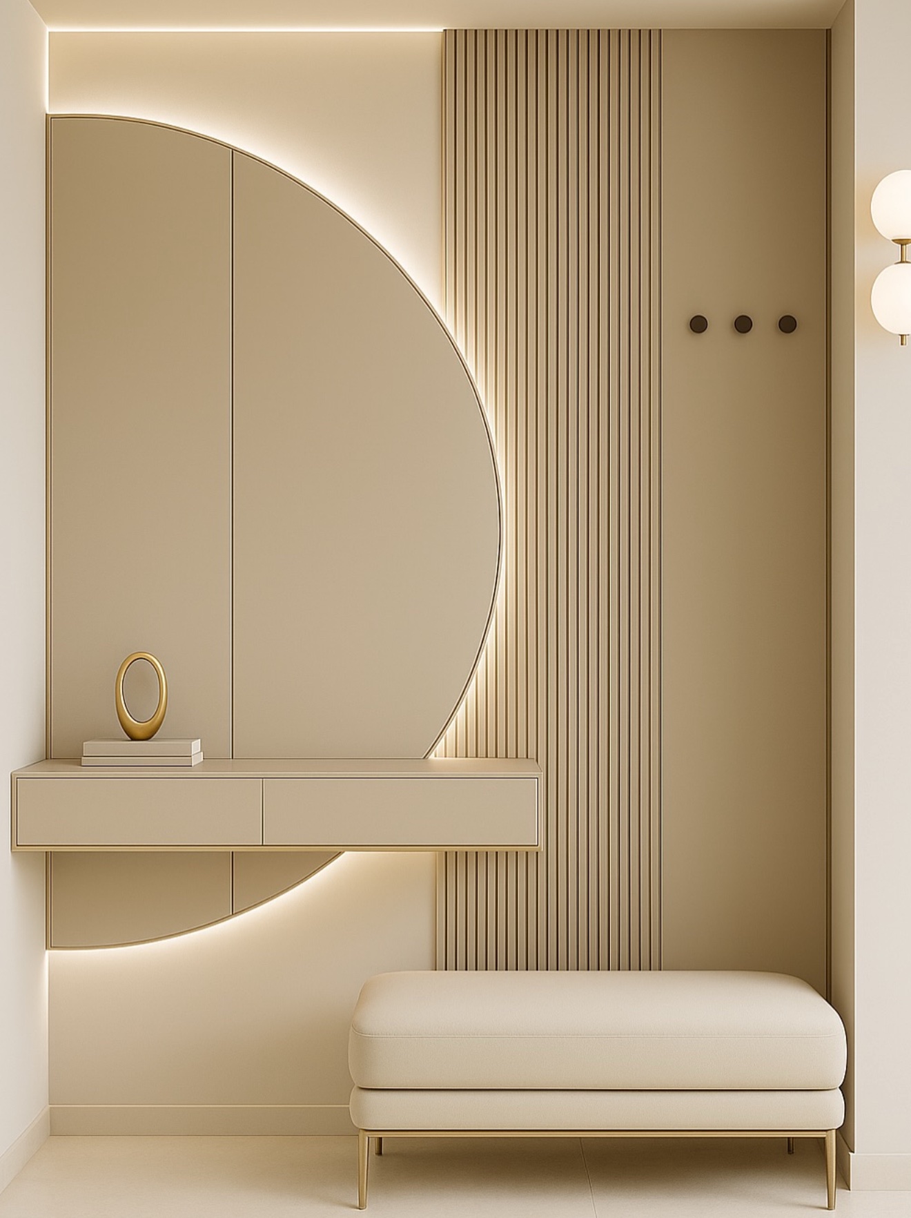 Painel em MDF lacado Beige e led cor amarela