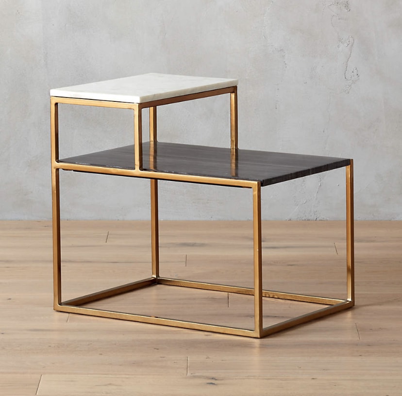 Tampo superior mármore extremoz Tampo inferior em pedra Quartz preta Estrutura ferro lacado dourado