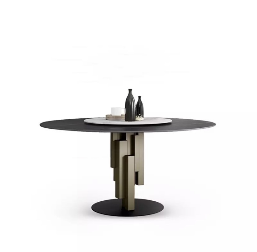 Tampo redondo cerâmico 12mm preto marquina Estrutura metálica lacada