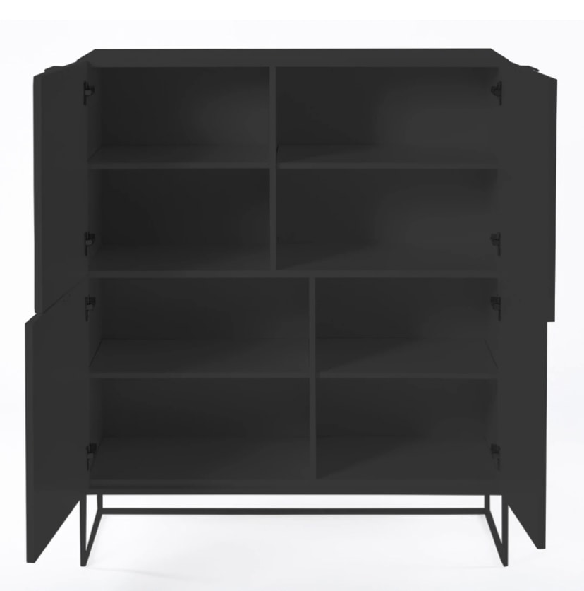 Móvel em mdf lacado Preto Estrutura metálica preta