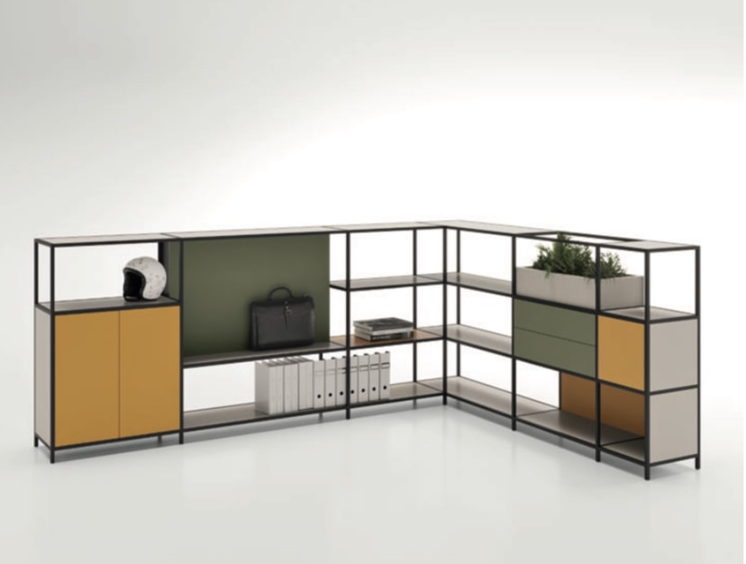 Prateleiras e módulos em Melamina Estrutura metálica lacado Preto