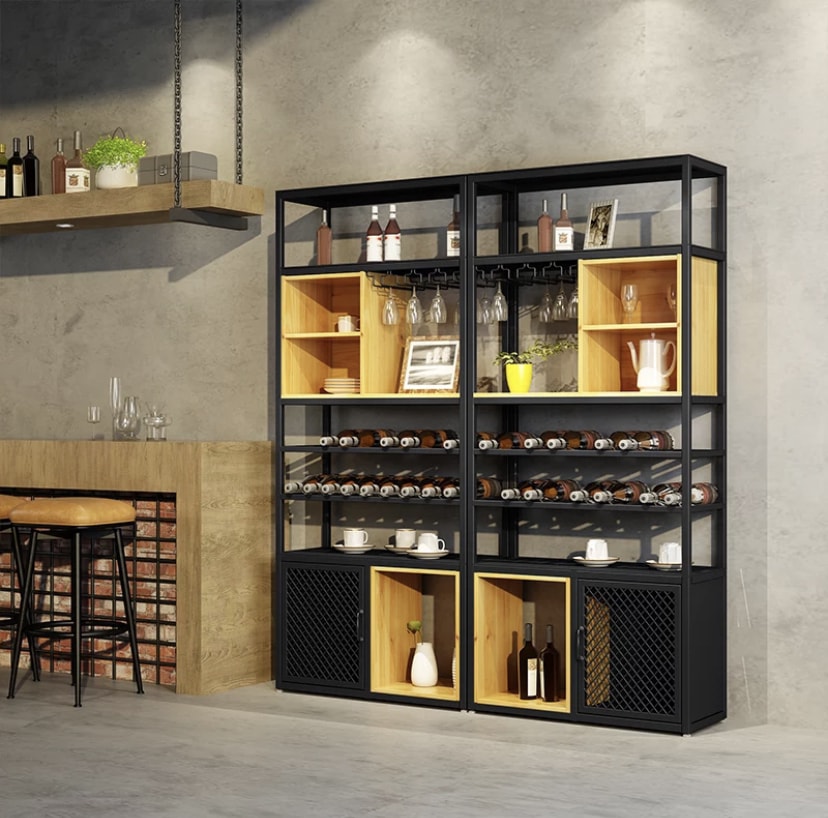 Módulos em Melamina carvalho Estrutura metálica lacada preto