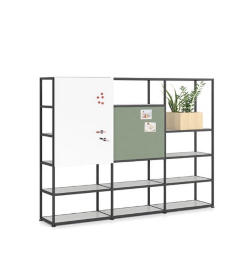 1 quadro branco magnético 1 costa tecido fuamizado xpress 1 box floreira em Melamina carvalho Estrutura metálica lacado preto