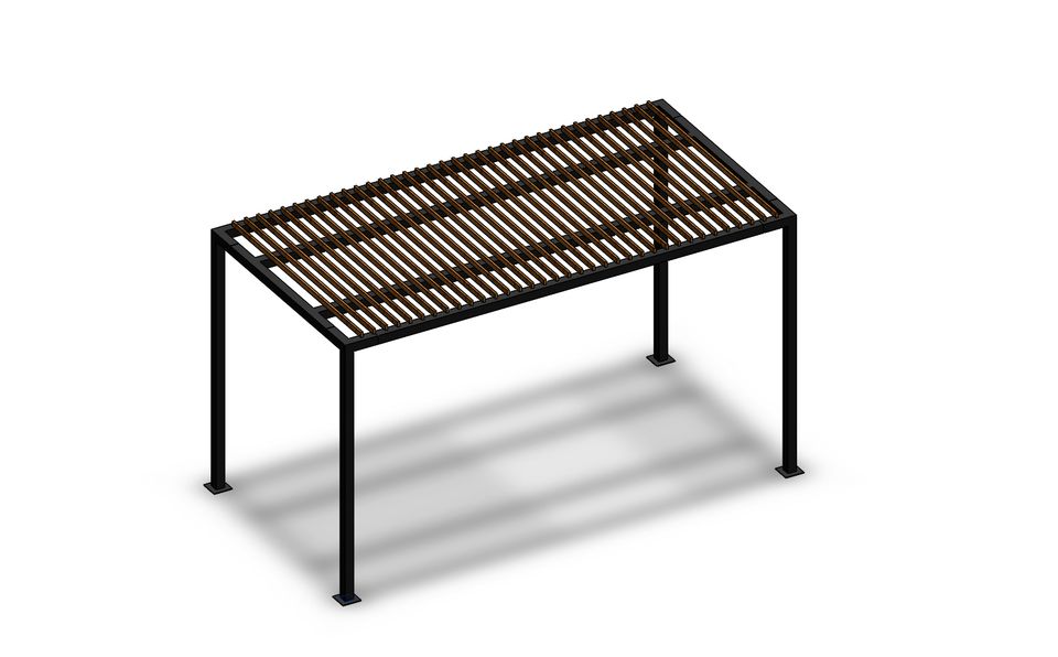 Estrutura metalica inox lacado Teto em madeira maciça cor teka