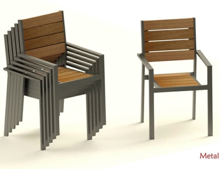 Assento e costa em ripas madeira Estrutura metálica