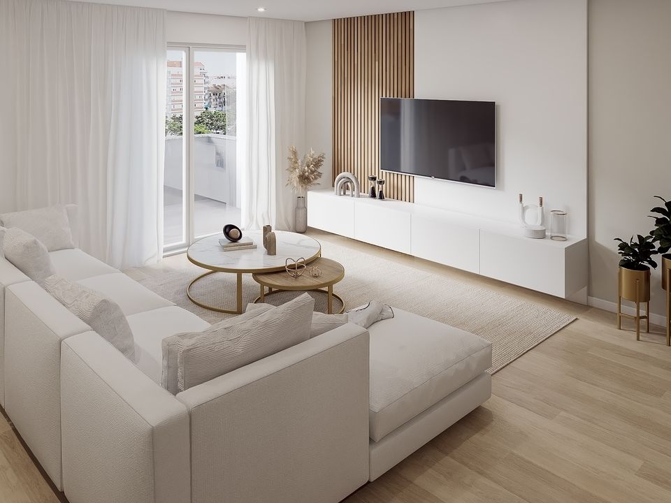 Mobiliário incluido no preço painel tv 800 h2500 ripado folha carvalho painel tv 1200 h2500 mdf lacado branco movel tv 2000×350 h400 mdf lacado branco mesa baixa red900 h450 tampo marmore venatino, estrutura dourado mesa baixa red450 h350 tampo folha carvalho , estrutura dourado