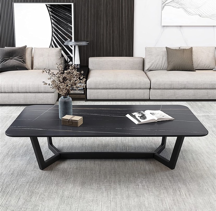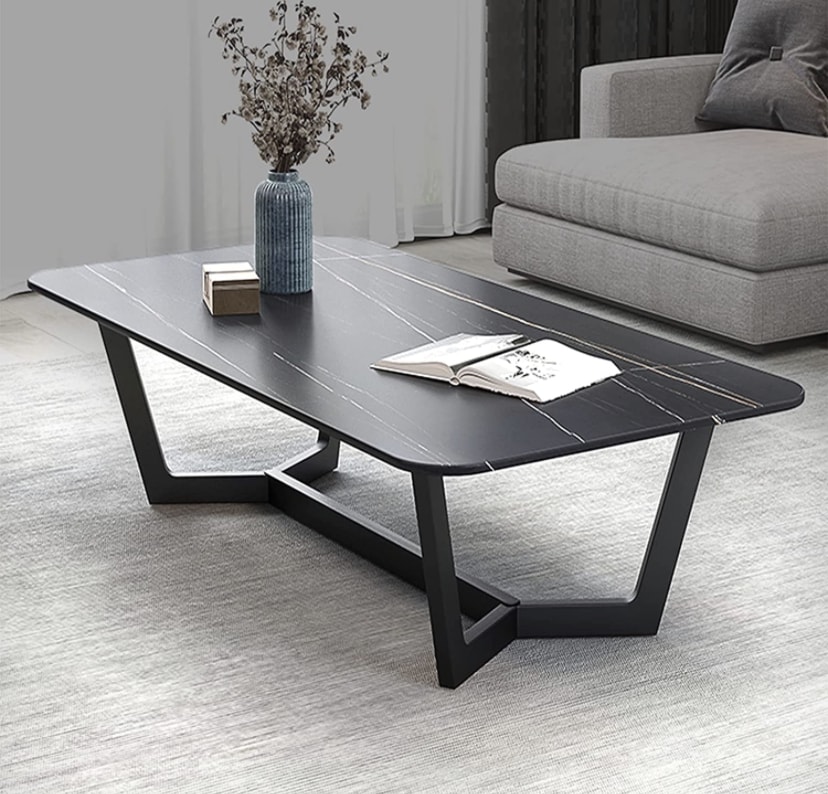 Tampo em Quartz Marquina preto Estrutura metálica preta