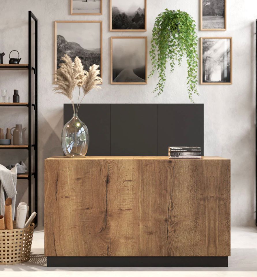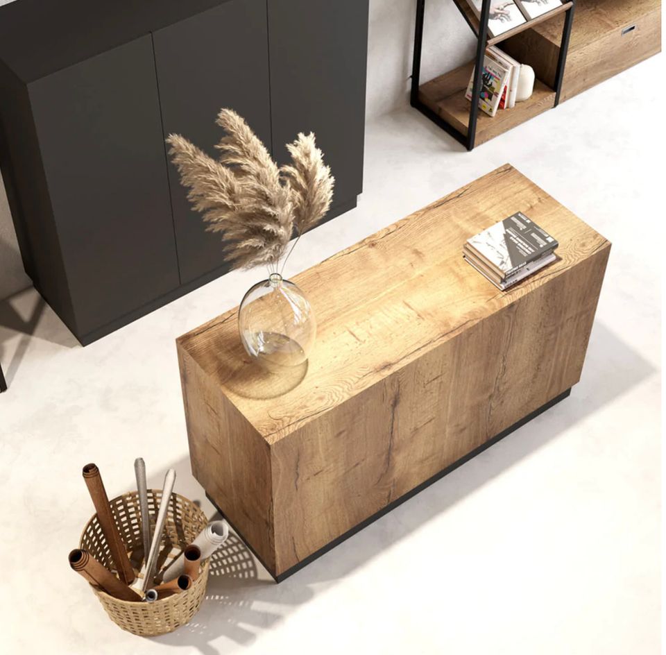 Exterior em melamina bacatta interior em melamina preto 2 gavetas