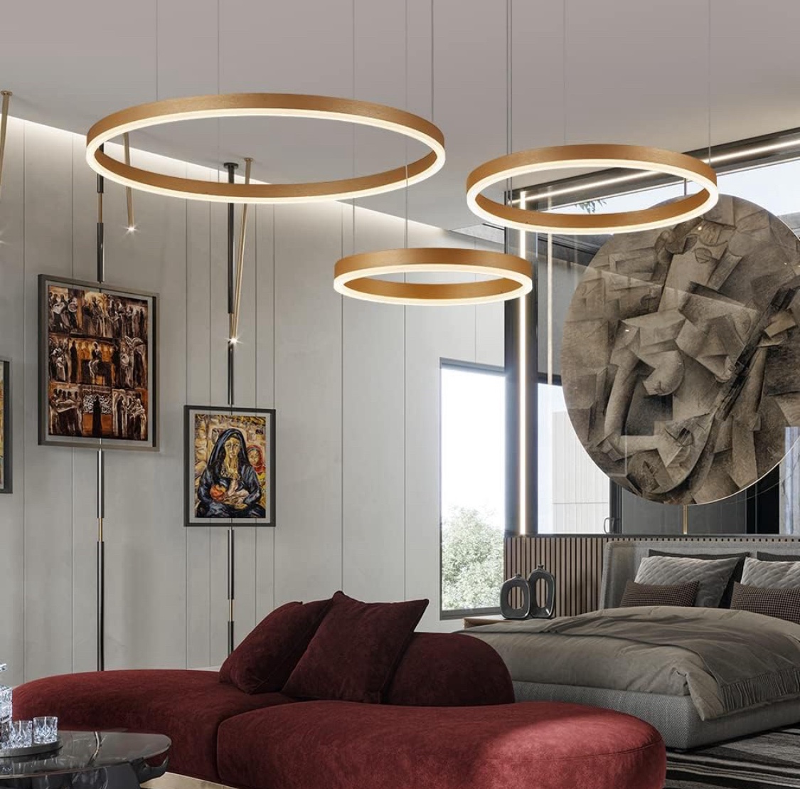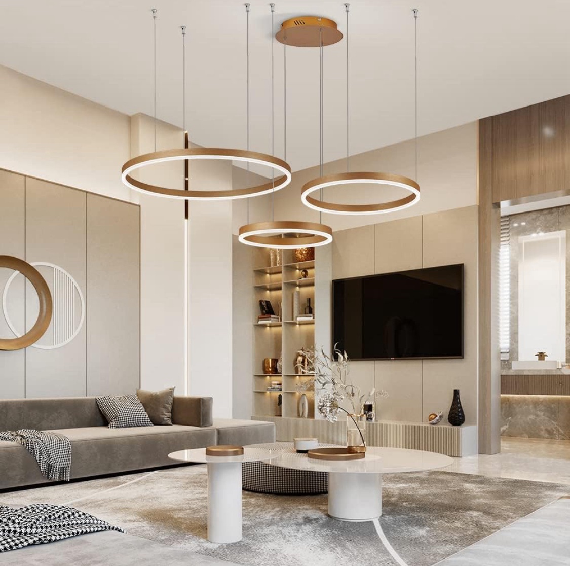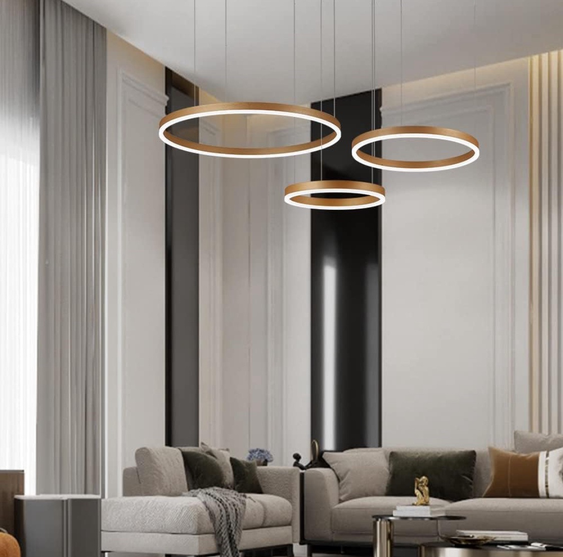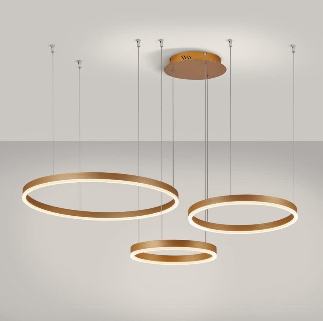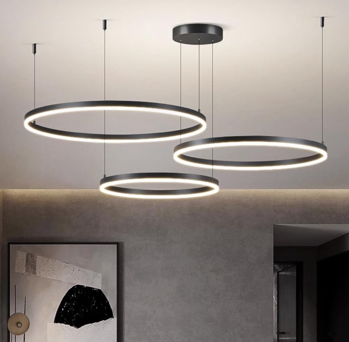 Candeeiro suspenso LED moderno, coleção de pintura branca de 3 anéis, apliques suspensos de luz ajustáveis candeeiro de teto moderno, regulável 2700 K – 6500 K, com controlo remoto de 78 w