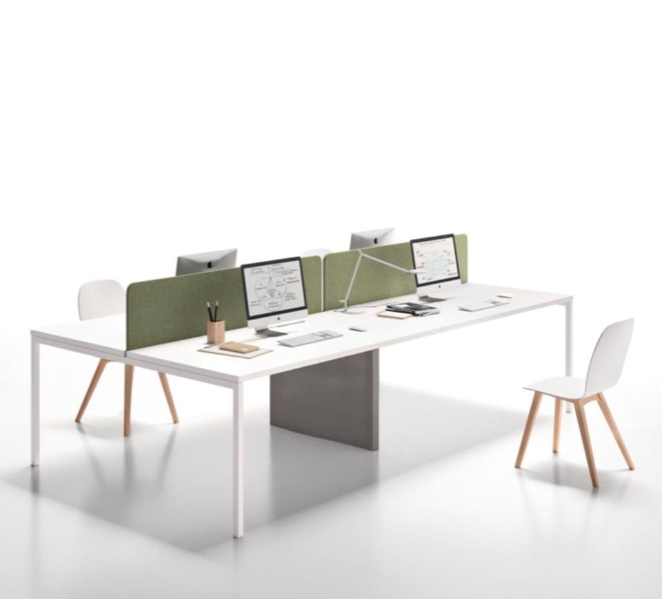 Tampos madeira Paineis centrais em tecido Estrutura metálica com perna central fechada