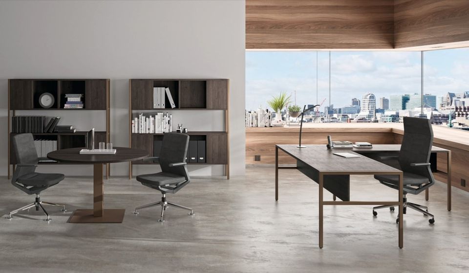 Tampos em Melamina nogueira Estrutura metálica lacada