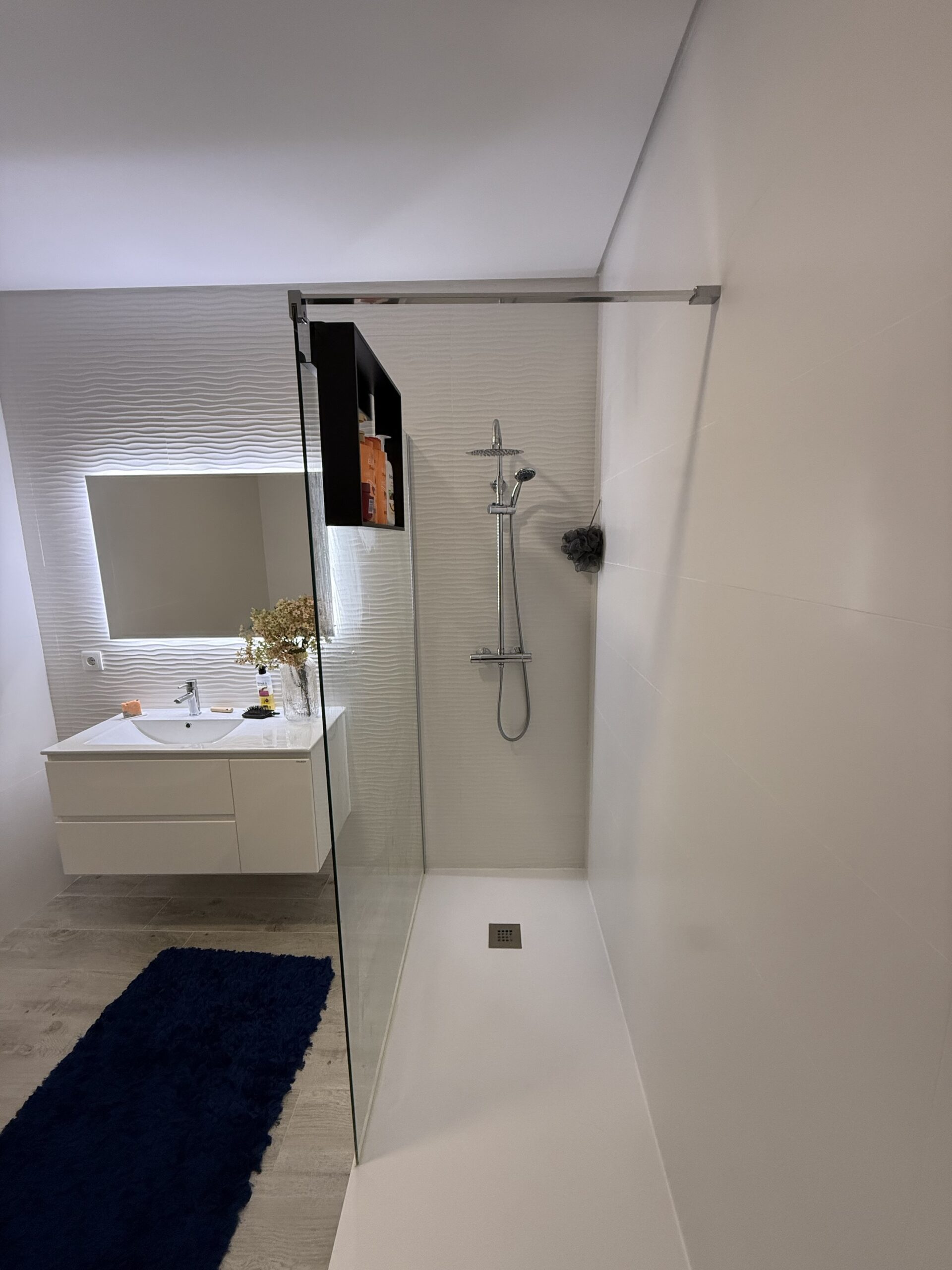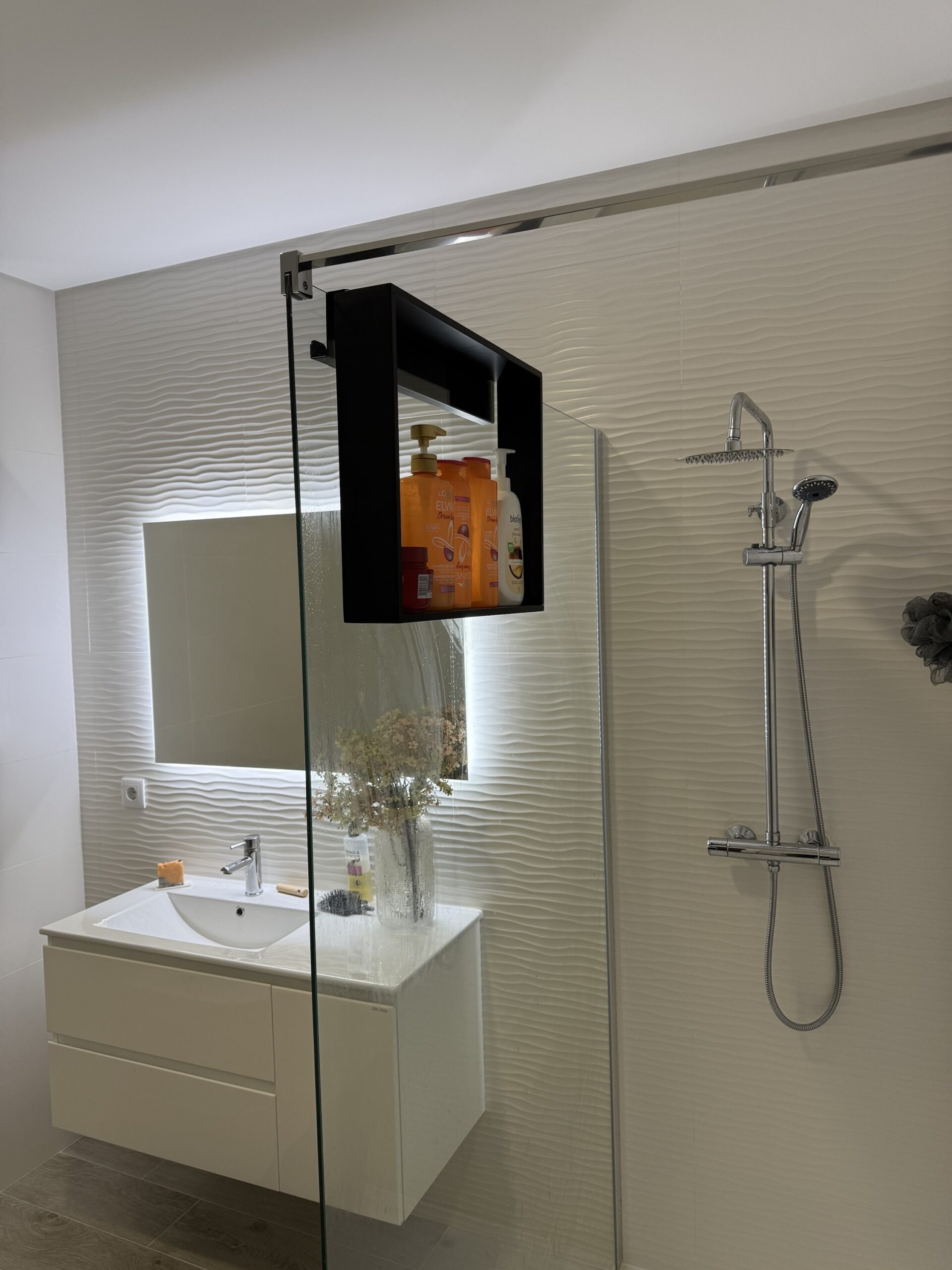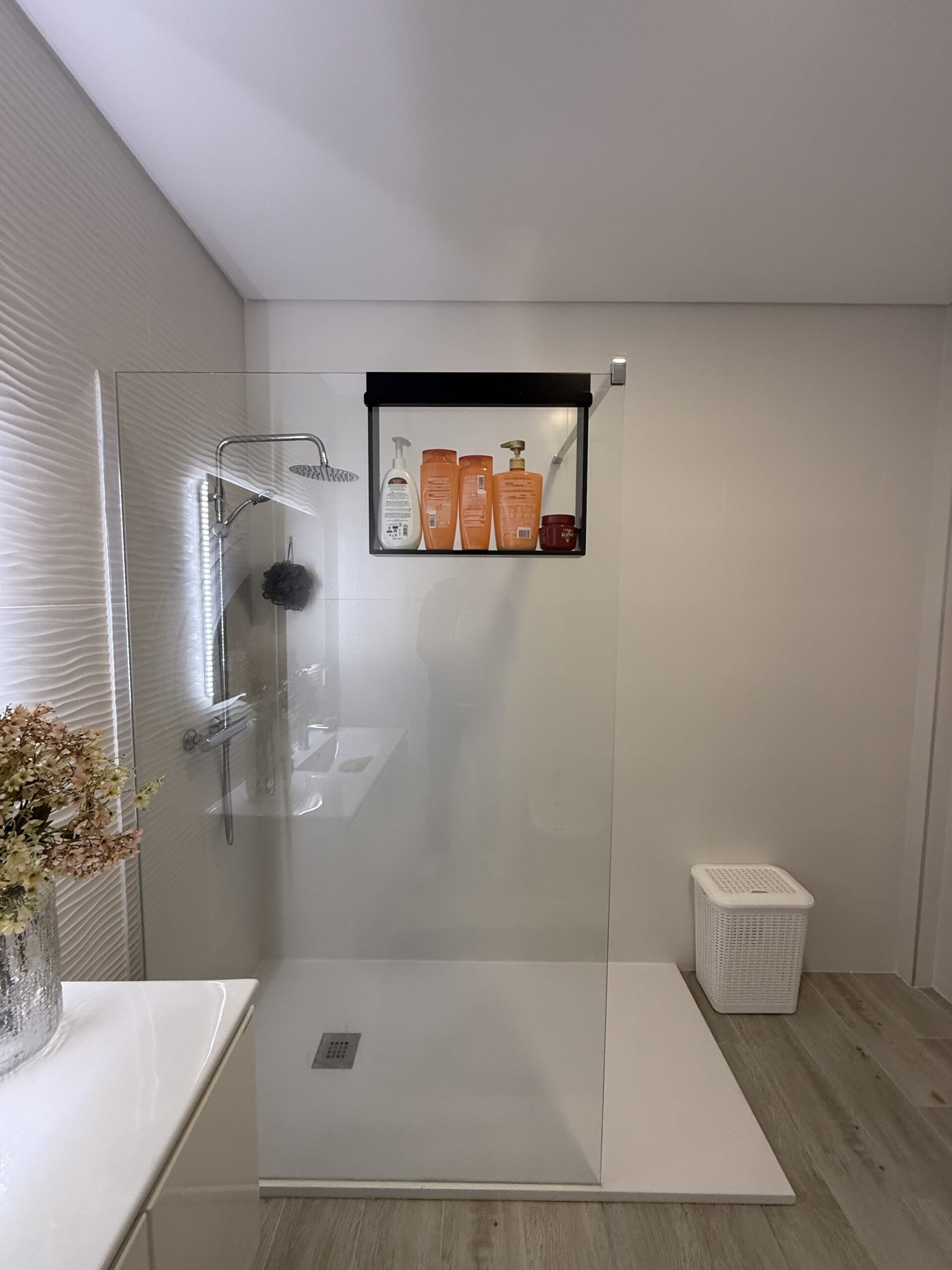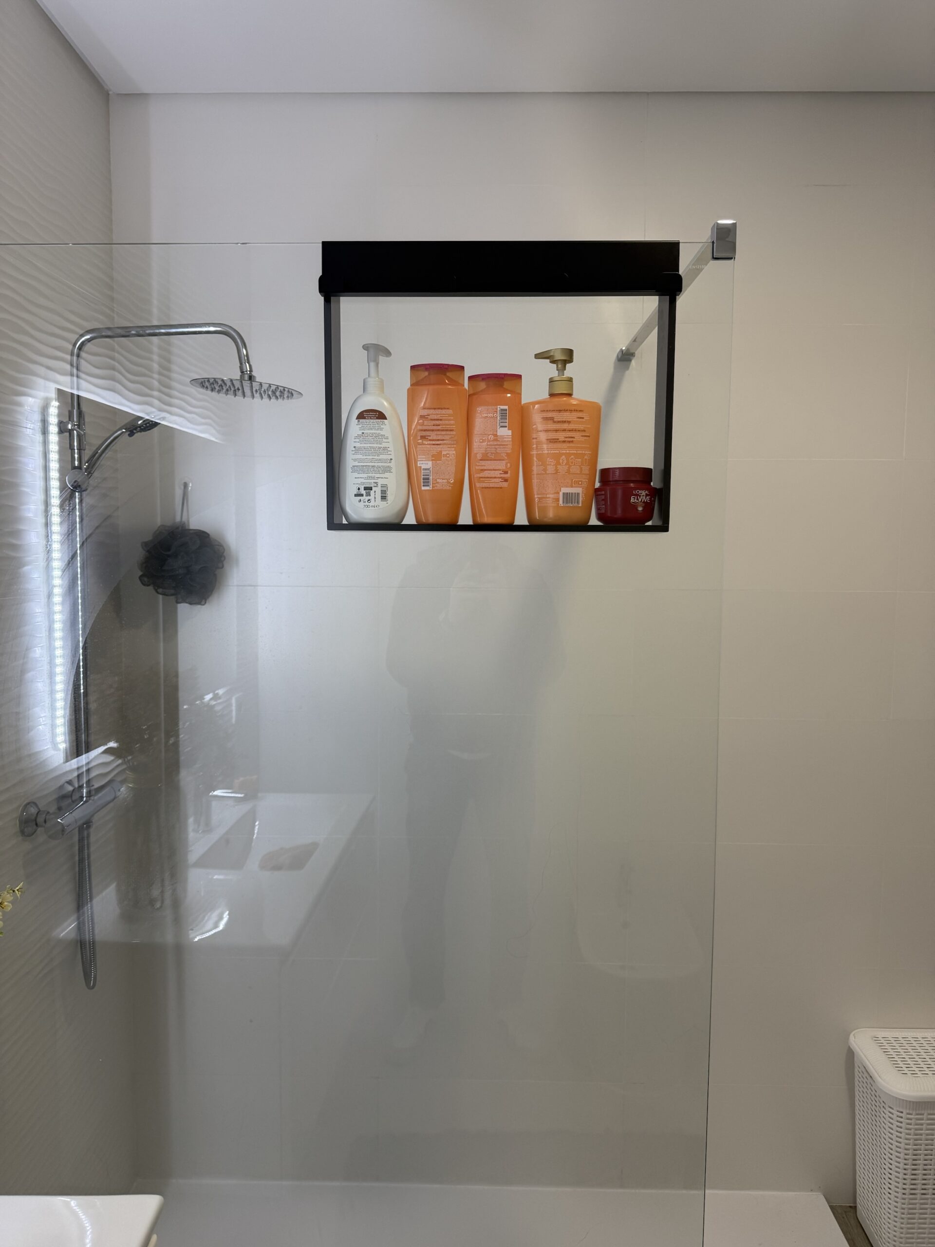 Estrutura metálica em aluminio lacado preto ,  apto para ambientes com muita humidade .
